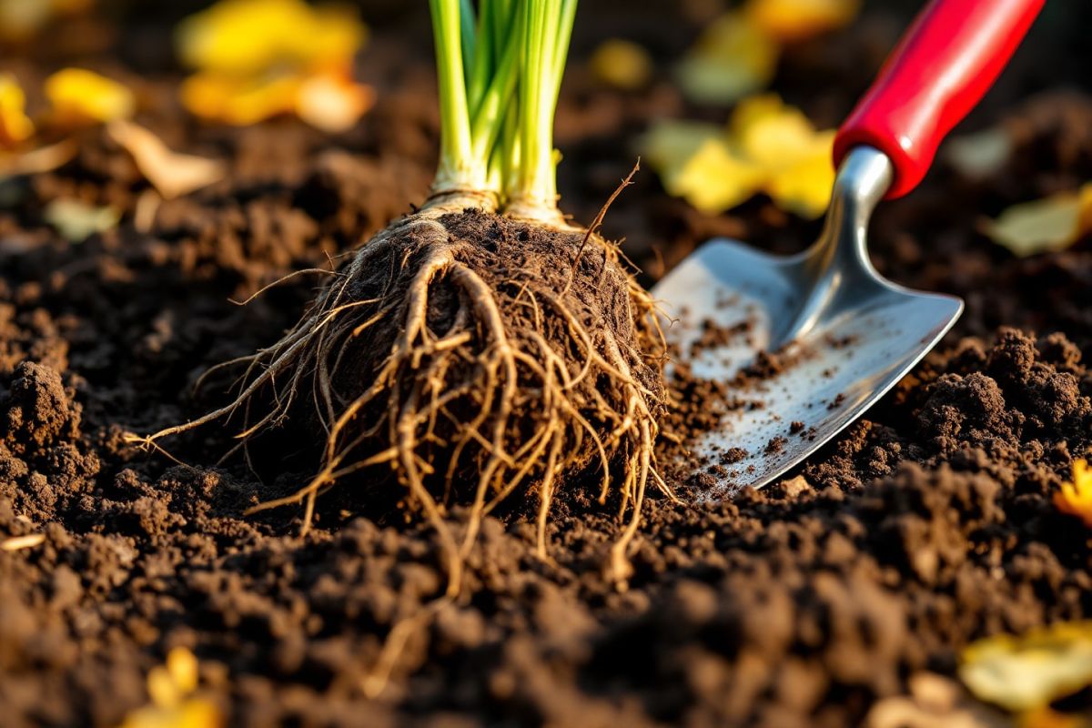 - Utilisez une fourche-bêche pour détourner la plante en creusant autour de la touffe.