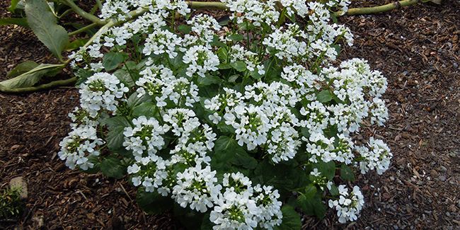 Avec ses feuilles semi-persistantes mesurant entre 3 et 10 cm, ovales ou arrondies et d'un vert lustré, le pachyphragma se distingue par sa croissance lente mais régulière. En mars ou avril, vous pourrez admirer ses petites fleurs blanches en forme de croix, un spectacle qui vient égayer les espaces forestiers. Bien que leur parfum soit souvent jugé peu agréable, elles ajoutent un charme indéniable au jardin.