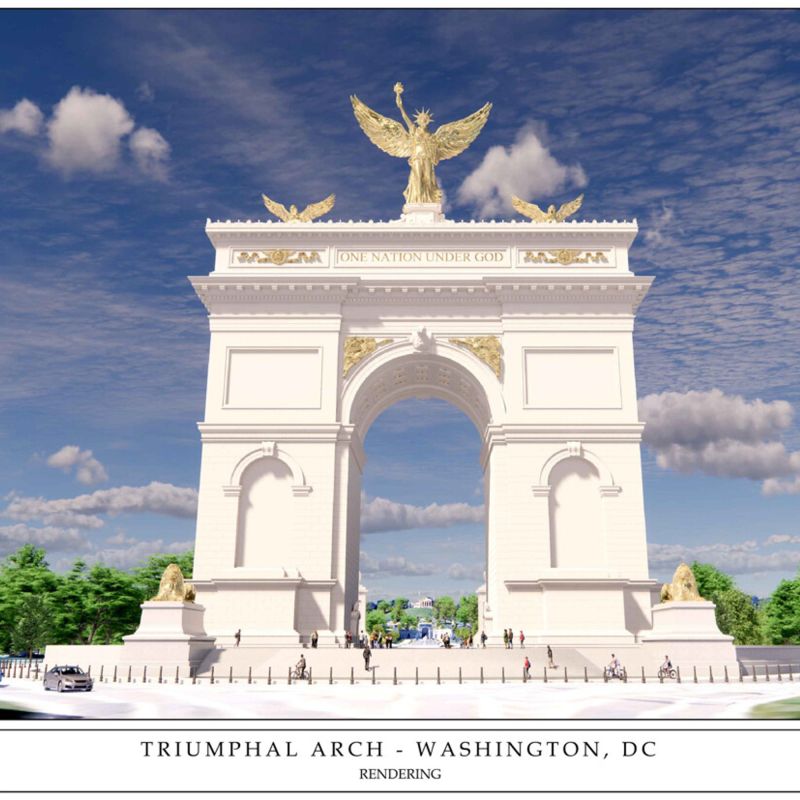 Trump a également ajouté que cette réalisation serait "une merveilleuse addition" dont le public pourra profiter pendant des décennies. L'architecture de l'arc, inspirée du célèbre monument parisien, comprendrait des statues dorées et les inscriptions "One nation under God" et "Liberty and justice for all" également en lettres dorées.