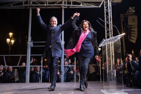 Durant la campagne, Anne Hidalgo avait choisi de ne pas se mettre en avant, préférant soutenir discrètement sa candidate dans le XVe arrondissement, Anouch Toranian. Le soir des élections, elle guettait la victoire de son ancien premier adjoint, avec qui ses relations s'étaient tendues. Sur le parvis de l'Hôtel de Ville, elle fut entourée de ses proches, se prêtant à une mise en scène soigneusement orchestrée.