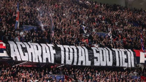Au cœur du Parc des Princes, la banderole proclamait : « Achraf, total soutien ». Ce soutien a également été renforcé par des chants en faveur du latéral marocain, rapportés par le journal L’Équipe.